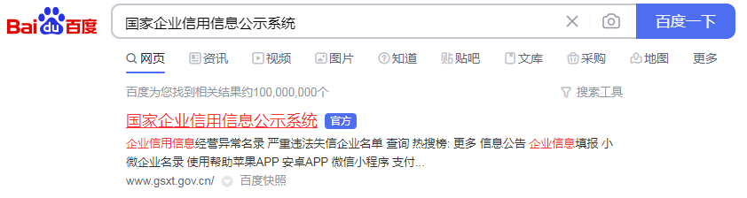 第一步,打开百度搜索“国家企业信用信息公司系统”