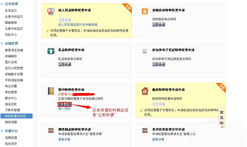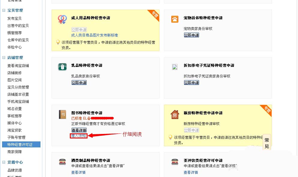 因为工作的原因,所以对淘宝还是有一点了解,所以在这里给大家分享下。在这里我给大家分享的是淘宝特种经营许可中的图书类的申请流程。