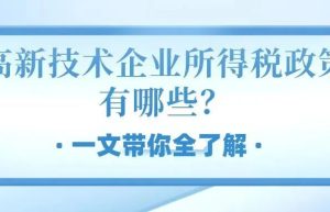 目前税收优惠政策覆盖科技创新活动的各个环节领域,高新技术企业税收优惠政策对企业的支持力度日益彰显,今…