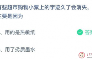 有些超市购物小票上的字迹久了会消失,主要是因为什么呢?这道题目是蚂蚁庄园小课堂8月27日的题目,下面小编带…